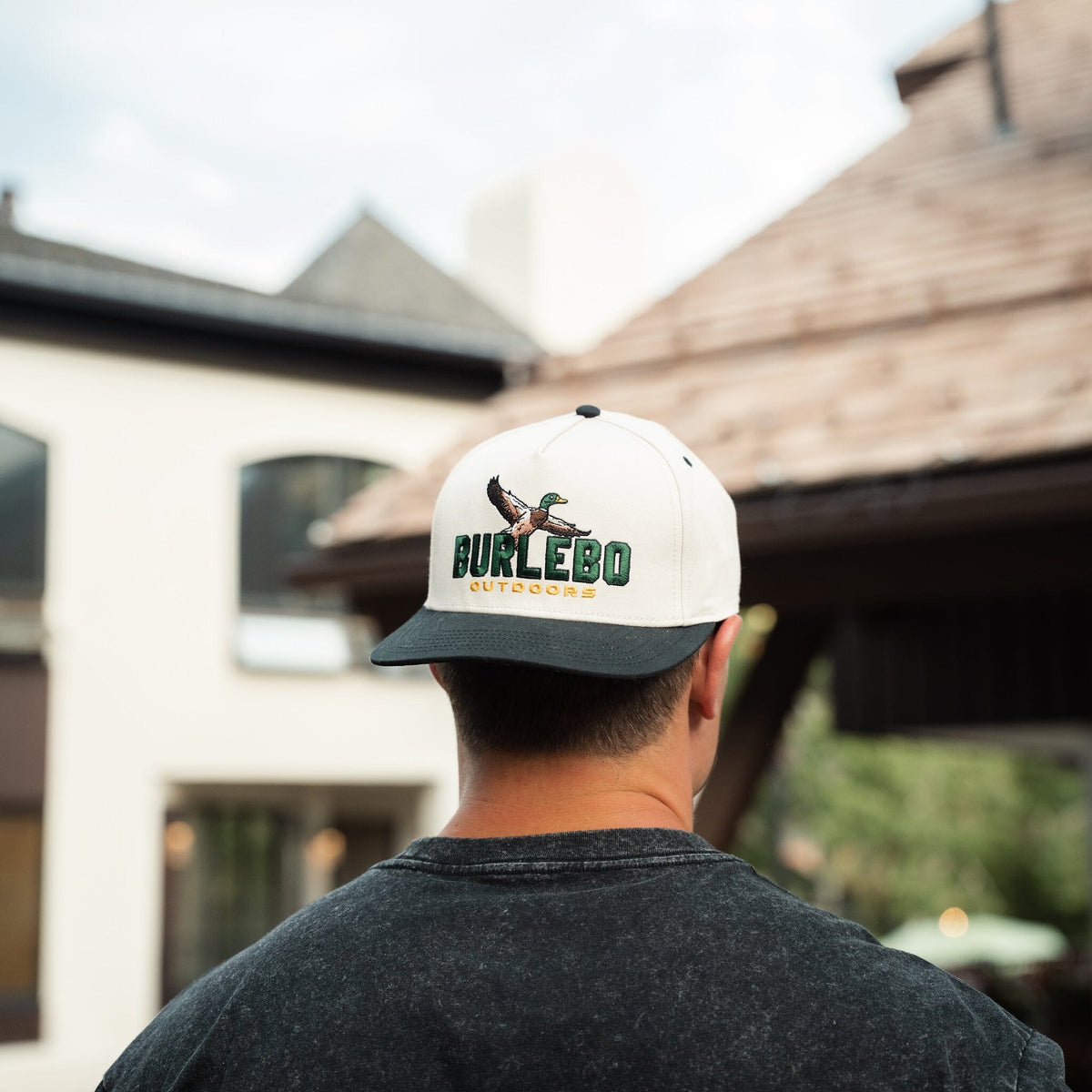 Low-profile 5-panel snapback in a clean cream finish, featuring our Signature “Mighty Duck” embroidery—a flying duck soaring over the BURLEBO name.