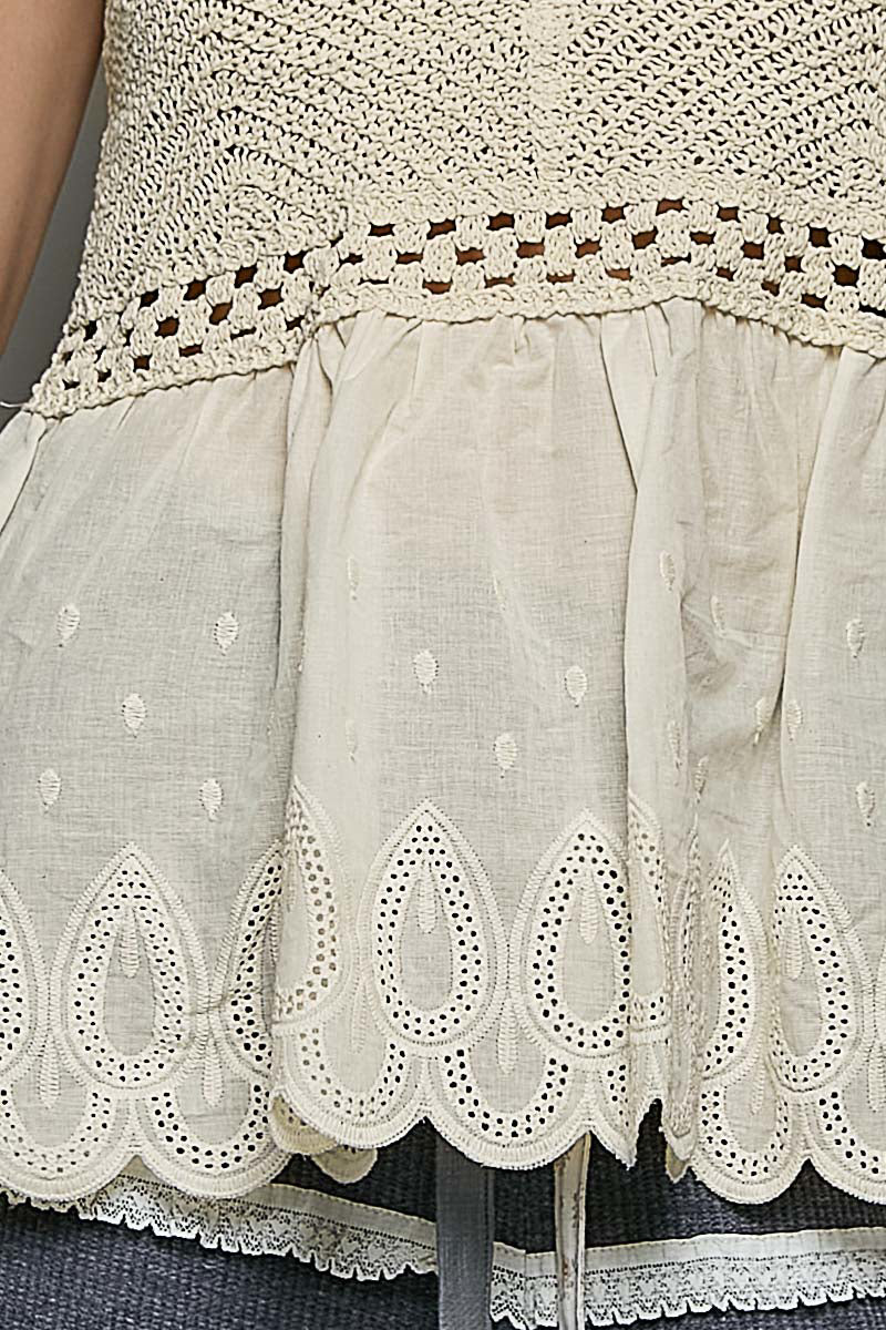 Simple with a thoughtful touch. This natural-toned tank features subtle detailing that adds texture and charm to a classic silhouette. Lightweight and easy to style, it’s a versatile piece that pairs effortlessly with denim, skirts, or layered looks for everyday wear.